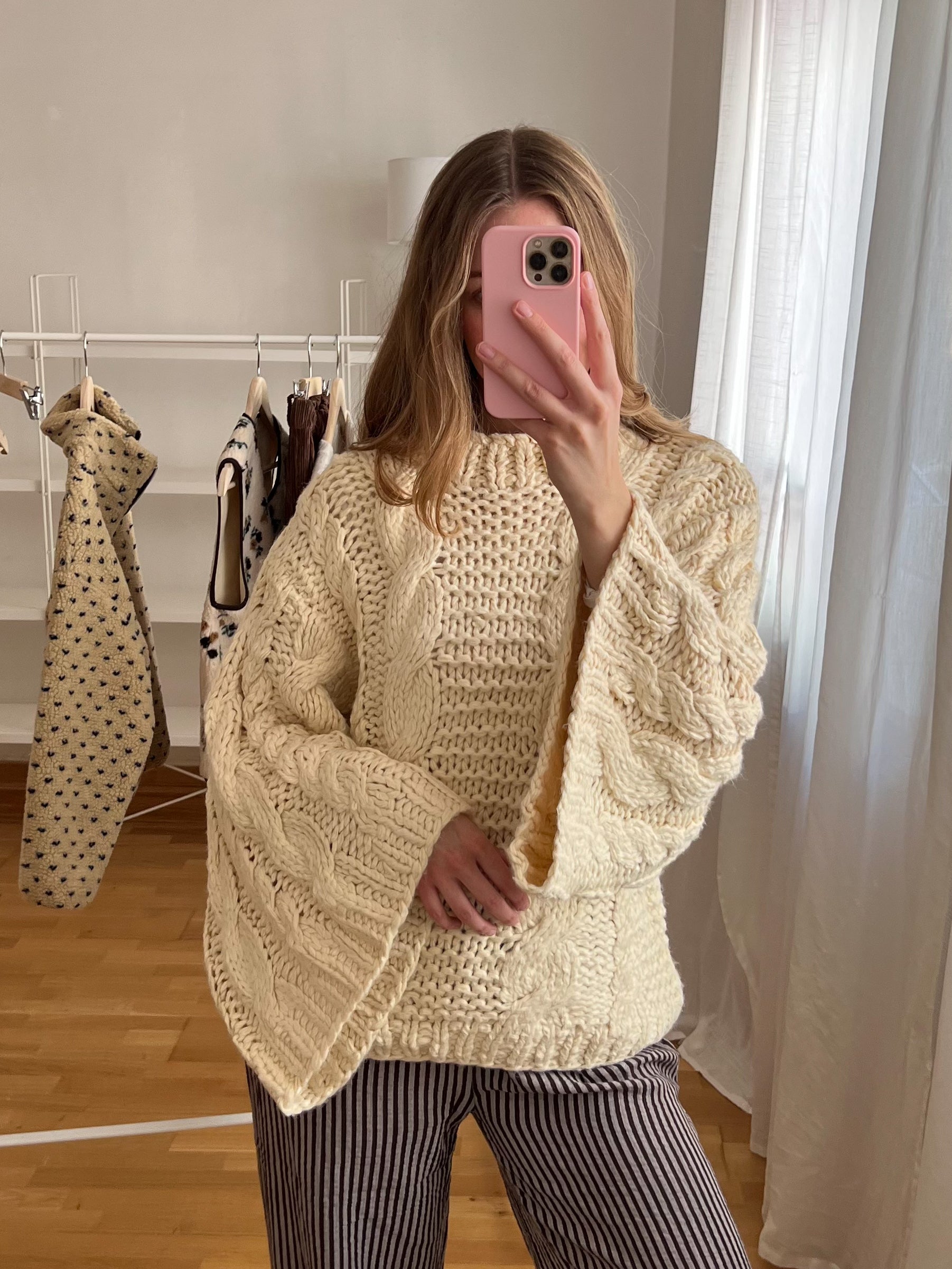 • Handmade Oversize Pullover mit aufwendigem Zopfmuster