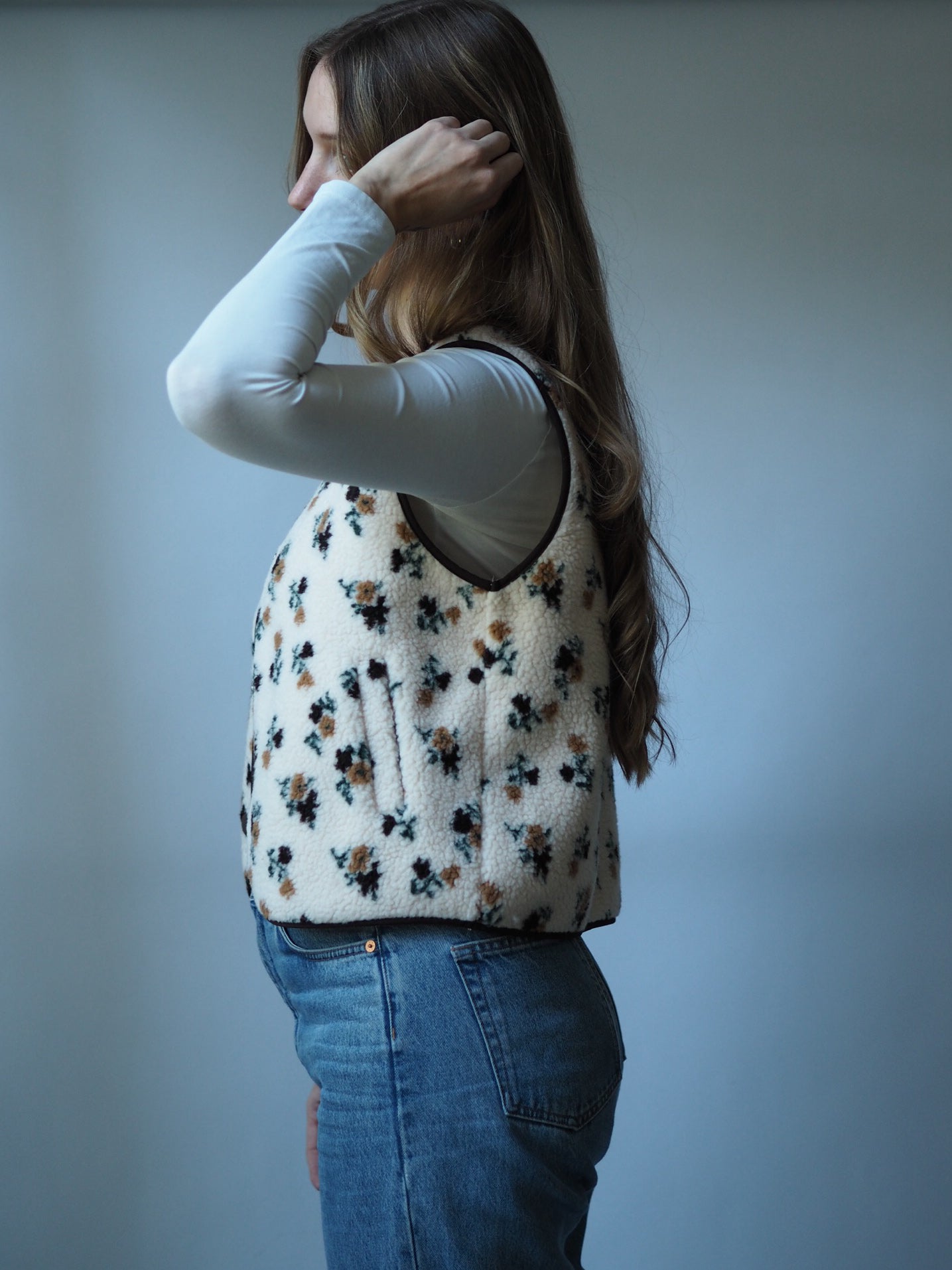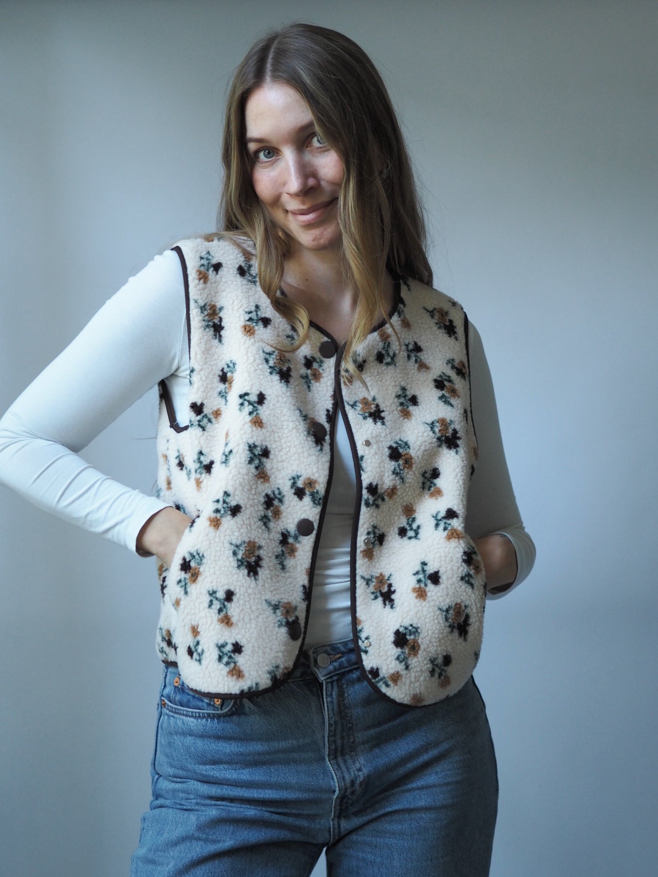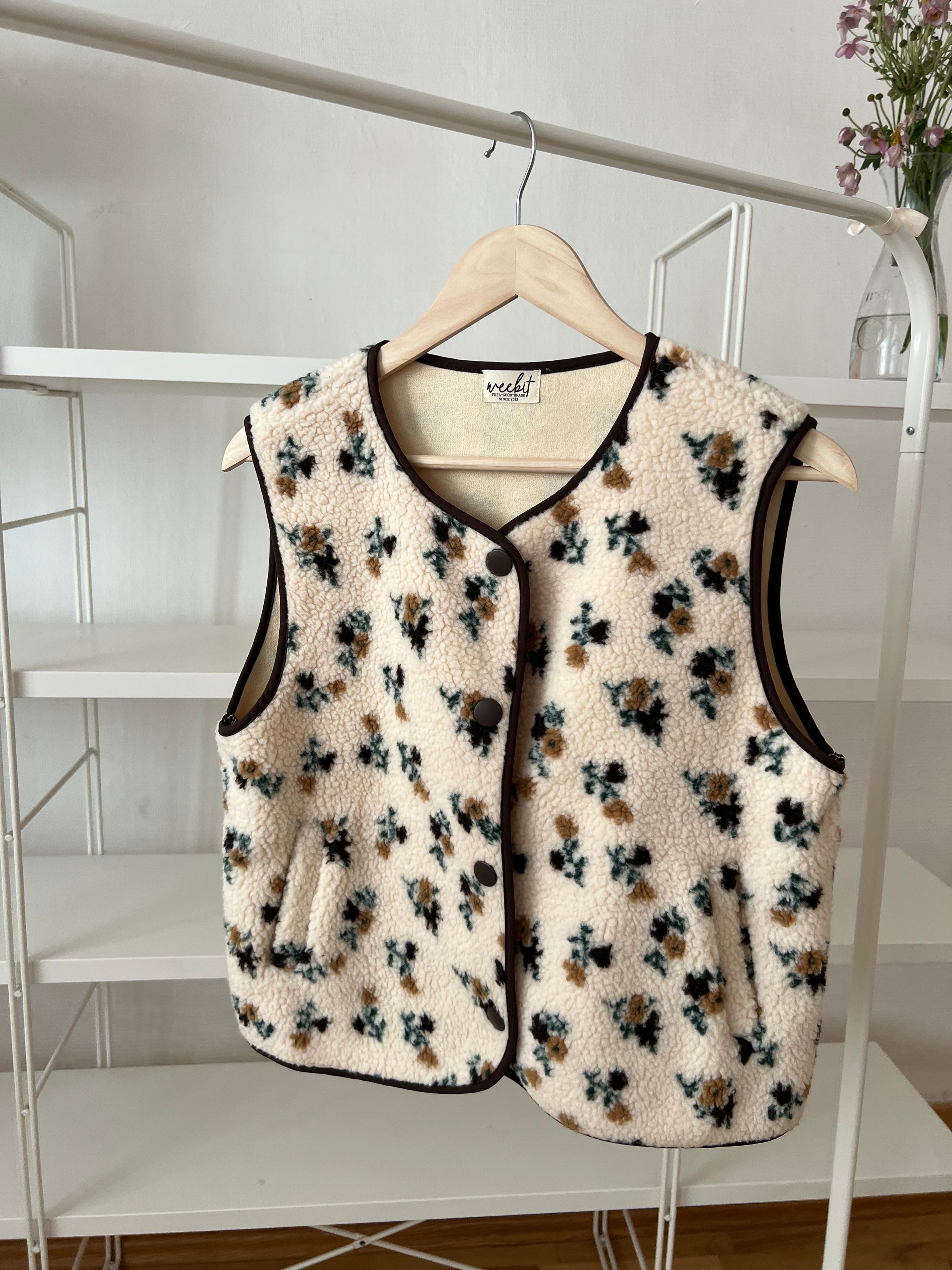 • Kuschelige Teddy-Weste mit floralem Allover-Print