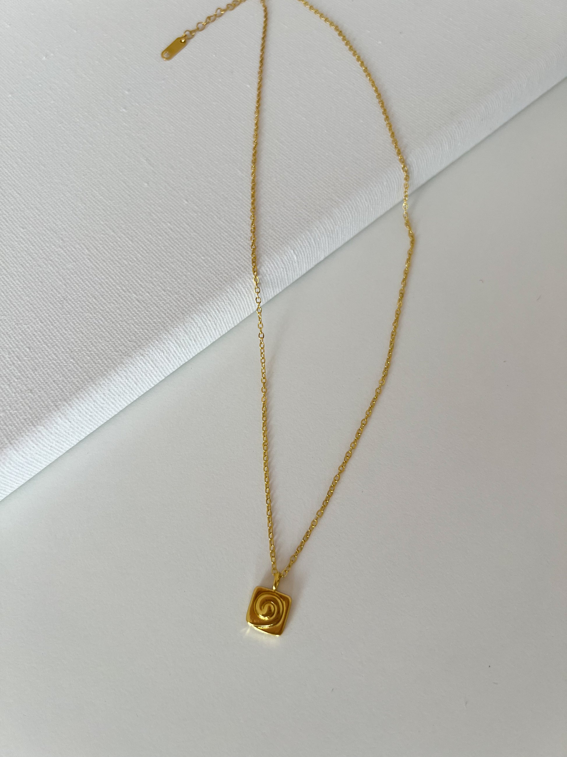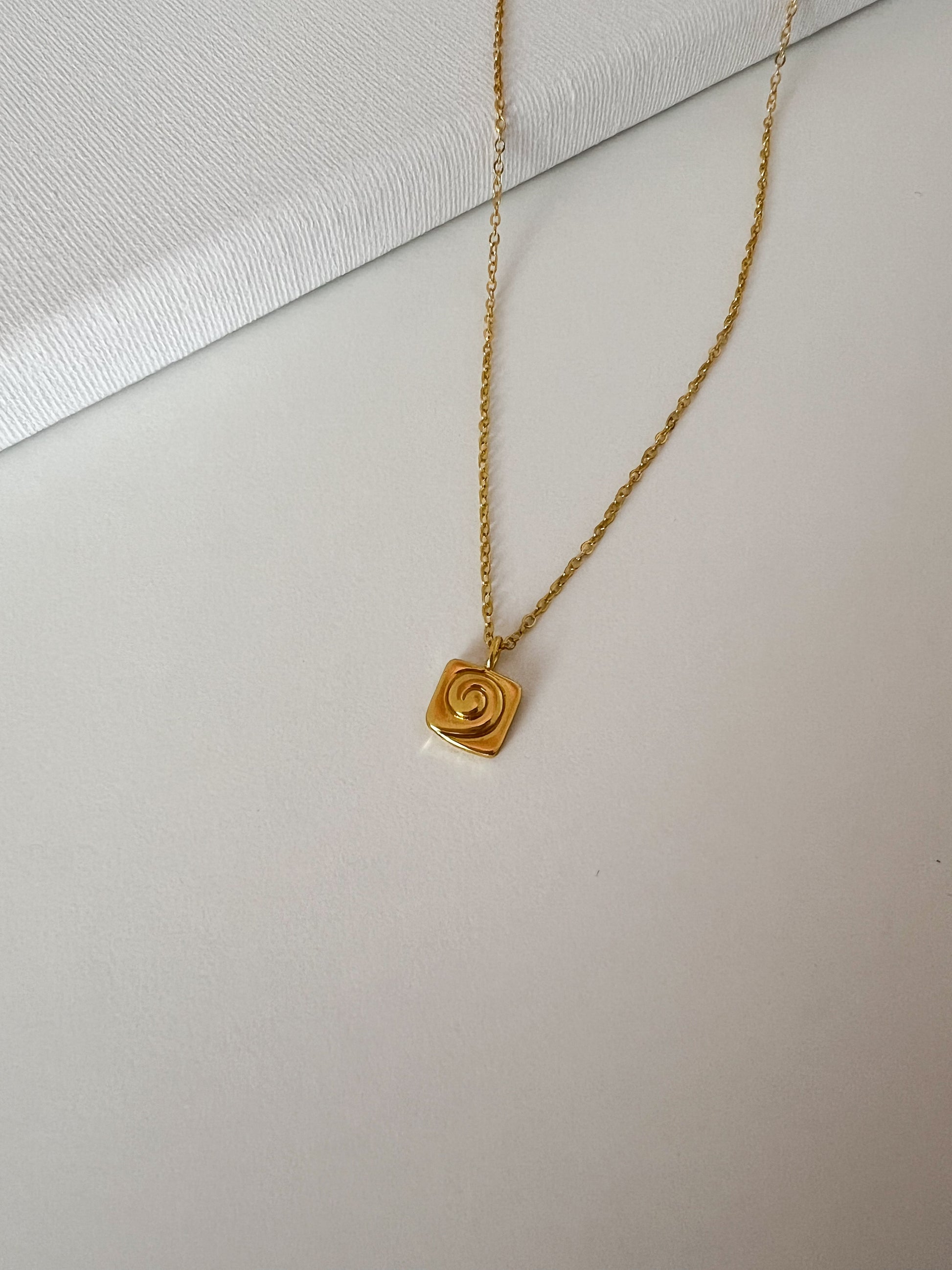 • Filigrane Gliederkette mit quadratischem Anhänger im „Zimtschnecken“-Design